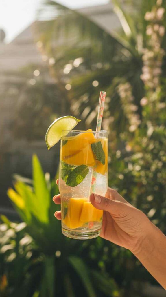 If you’re making ahead, mix the mango, lime juice, and sweetener and chill that base up to 24 hours. Add mint, ice, and sparkling water right before serving. Keep your sparkling water very cold for the best fizz.