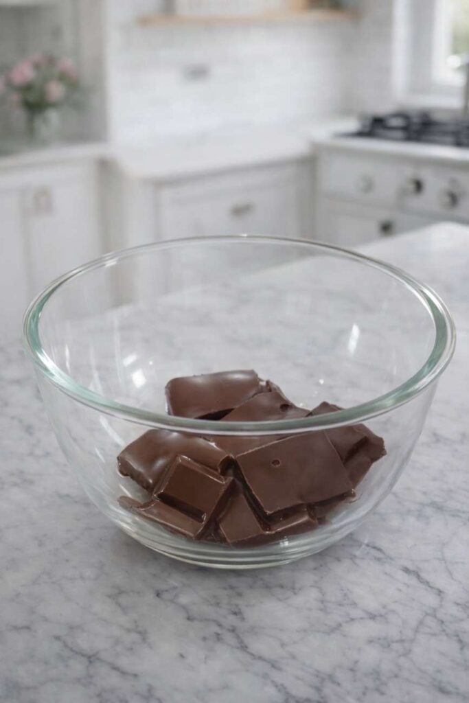 3. Melt the Chocolate: Take your 80g of chopped dark chocolate. Place it in a microwave-safe bowl. Microwave for 1 minute. Important Note: The prompt says “varies by house.” This is crucial. Microwaves have different wattages. Start with 30 seconds, stir, then do 15-second intervals. You want it melted well but not burnt.