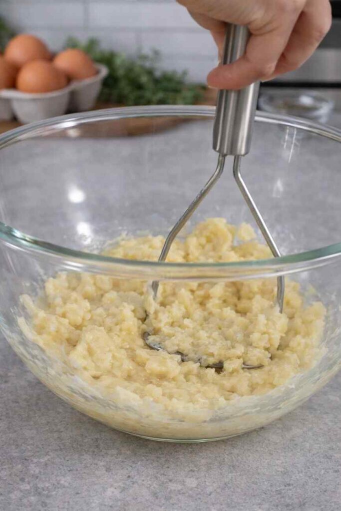 Peel ripe banana, place in bowl. Mash finely with fork until almost puree consistency — no large chunks. The finer, the smoother your batter.