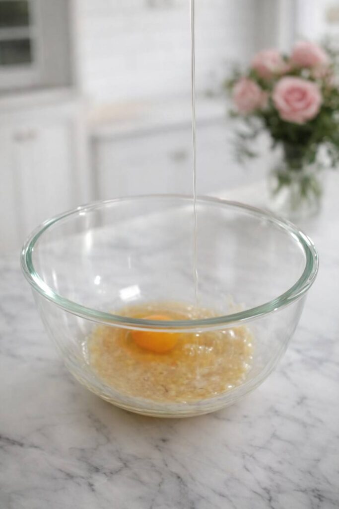 2. Add the Egg: Crack your room temperature egg into the mashed banana. Mix well. Whisk vigorously for about a minute until the mixture looks frothy and uniform.