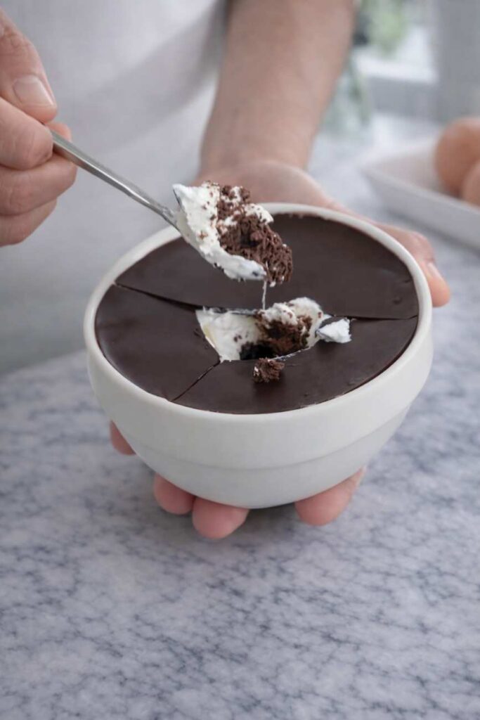 It’s fun to break it up. Because the chocolate coating hardens and the base is dense, this doesn’t need a fork. You can break it into shards or bites with your hands. This tactile experience makes snacking more engaging.