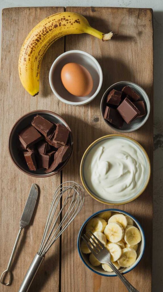Pro Tips Use bananas with brown spots — natural sweetness. Room temp egg won’t shock chocolate. Mash banana very fine. Cool cake COMPLETELY before yogurt or it’ll melt. Greek yogurt (not regular) — thicker, holds shape. Chill to harden chocolate glaze.