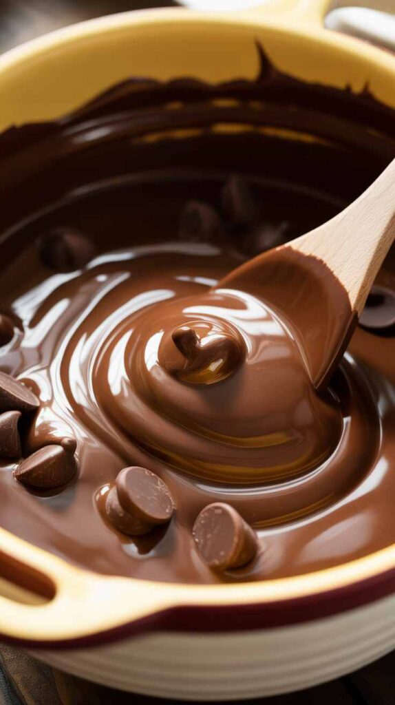 Melt the chocolate base layer. Combine chocolate chips and coconut oil in a microwave-safe bowl. Microwave in 20-second intervals, stirring thoroughly between bursts to prevent scorching and ensure even melting. This gentle approach keeps the chocolate smooth and silky rather than thick and clumpy. Once fully melted, let it cool for about one minute before using so it’s easier to work with.