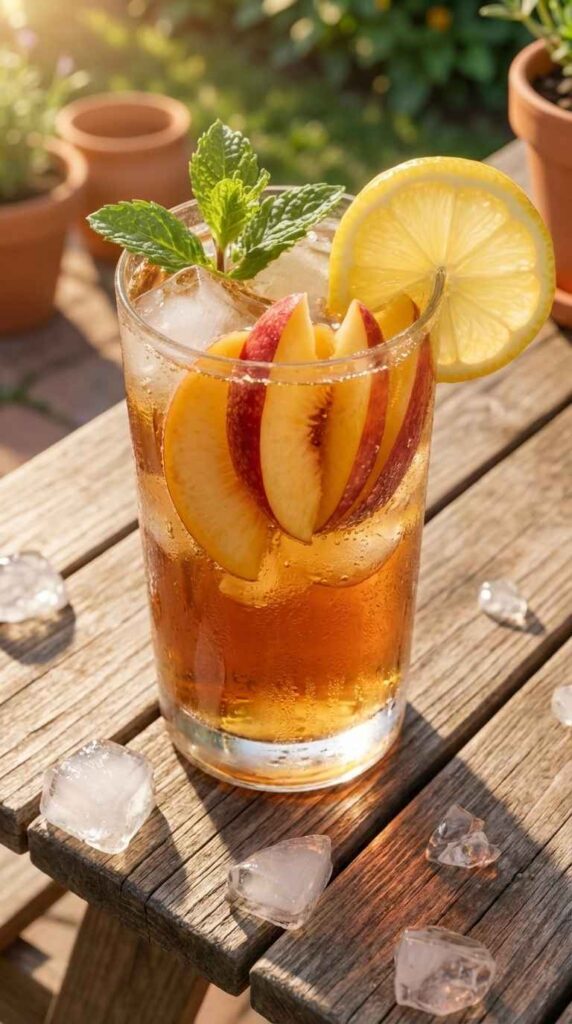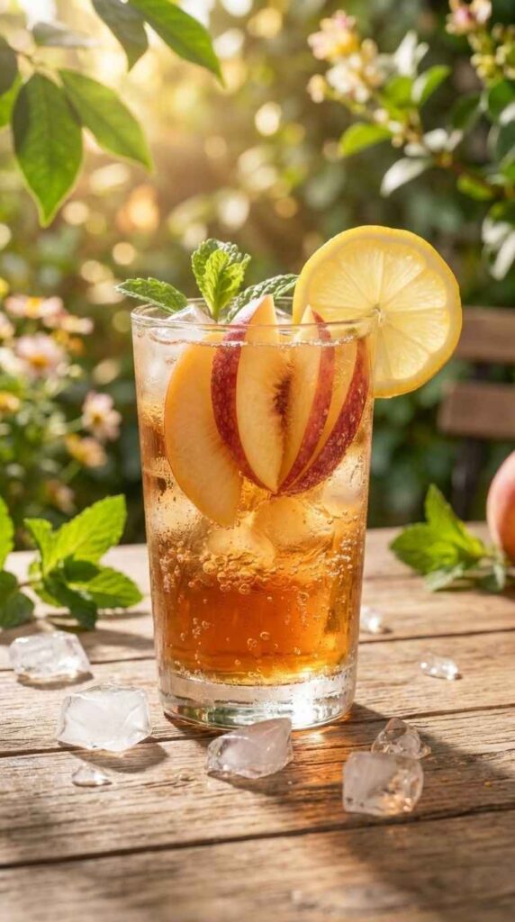 5-Min Sparkling Peach Iced Tea – Light, Bubbly, and Refreshing