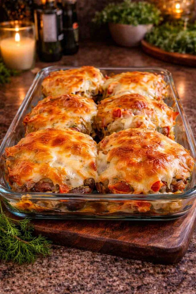 If you ask most Turkish home cooks what their ultimate weeknight comfort dish looks like, the answer will almost always involve köfte — and very often, it will involve köfte baked under a generous, golden blanket of melted cheese with a rich, creamy sauce holding everything together beneath it. This Baked Beef Meatballs with Creamy Mushroom Sauce — Fırında Soslu Köfte — is that dish in its most satisfying, most reliable form. Juicy, perfectly spiced beef meatballs are pan-seared until golden, arranged in a baking dish, smothered in a silky mushroom, carrot, and cream sauce, topped with grated kaşar cheese, and baked until bubbling and deeply golden.