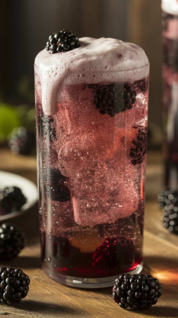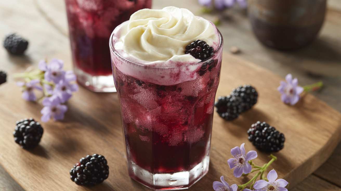 - Add Cream, Garnish & ServeSlowly pour 1–2 tablespoons of heavy cream or half-and-half over each drink. Give it a soft stir to blend. Top with extra blackberries, a lemon twist, or a sprig of mint. Serve immediately while icy and effervescent.Pour the cream slowly and use it very cold — this prevents curdling and creates that beautiful swirl.