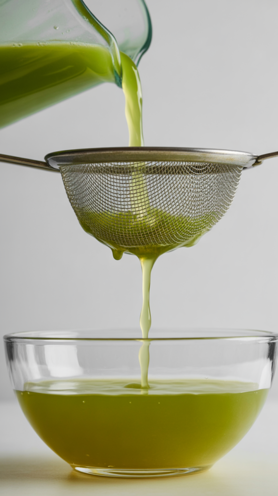 - StrainStrain the mixture through a fine mesh strainer to remove pulp.This creates a smooth, clean texture.