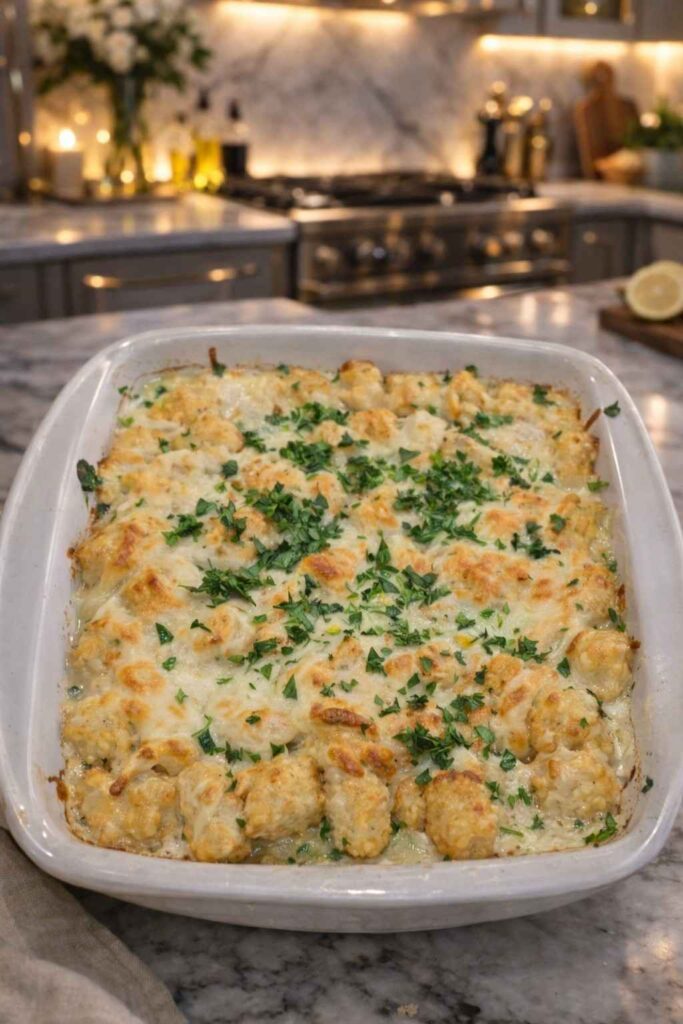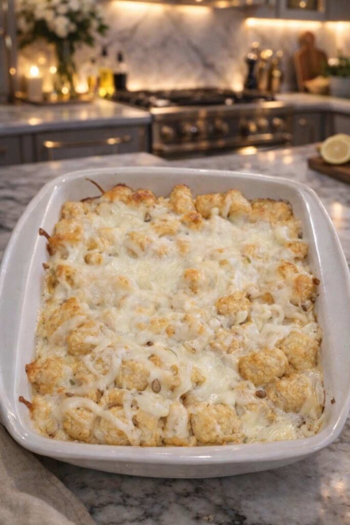 Chicken Alfredo Tater Tot Casserole — The Ultimate Comfort Food Bake Your Family Will Request Every Week