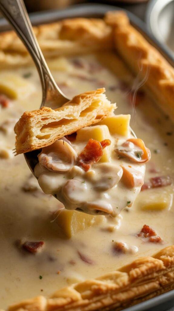 Clam chowder pot pie is the ultimate expression of New England comfort — creamy, hearty, and deeply satisfying in every single bite. The thick, clam-studded filling paired with a buttery, golden crust creates a dish that feels both nostalgic and special at once. Whether you are making it for a family dinner or serving it at a gathering in individual ramekins, it never fails to impress. Once you make it, it will absolutely earn a permanent spot in your cold-weather dinner rotation.