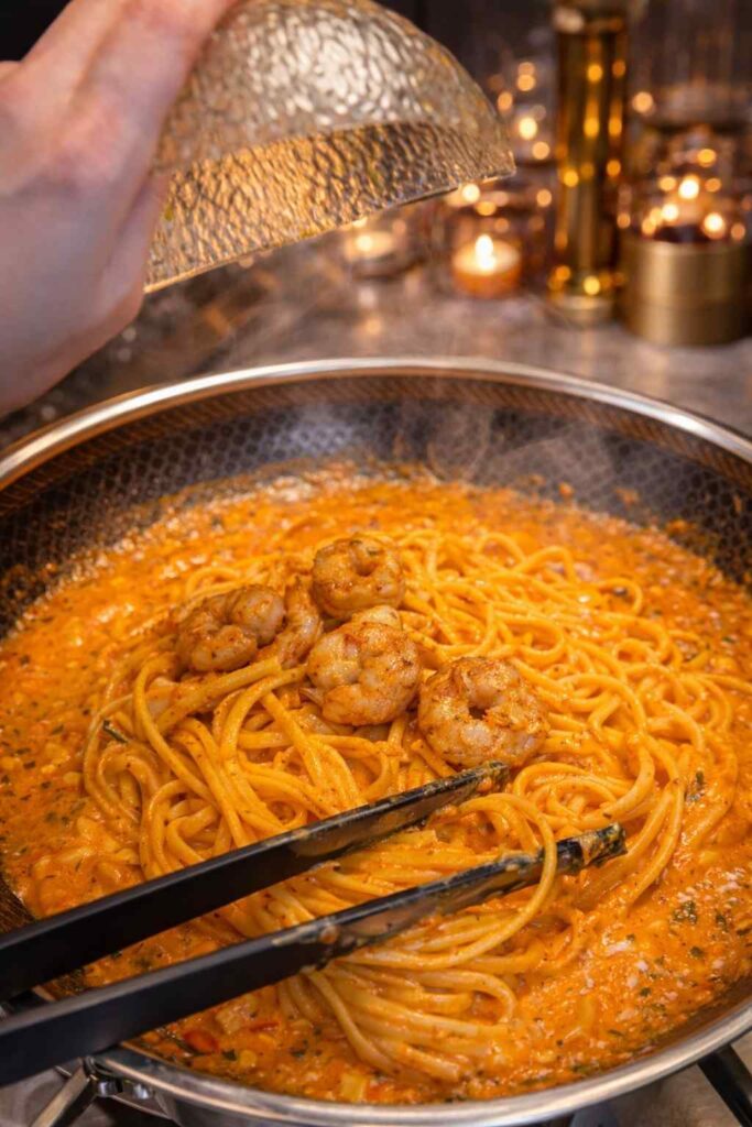 How do I store and reheat leftovers? Store leftovers in an airtight container in the refrigerator for up to 2 days. Reheat gently in a pan over low heat with a splash of cream or milk stirred through to loosen the sauce, which will have thickened considerably during storage. Avoid microwaving the shrimp if possible as reheating makes them rubbery — if you must microwave, use low power and short bursts.
