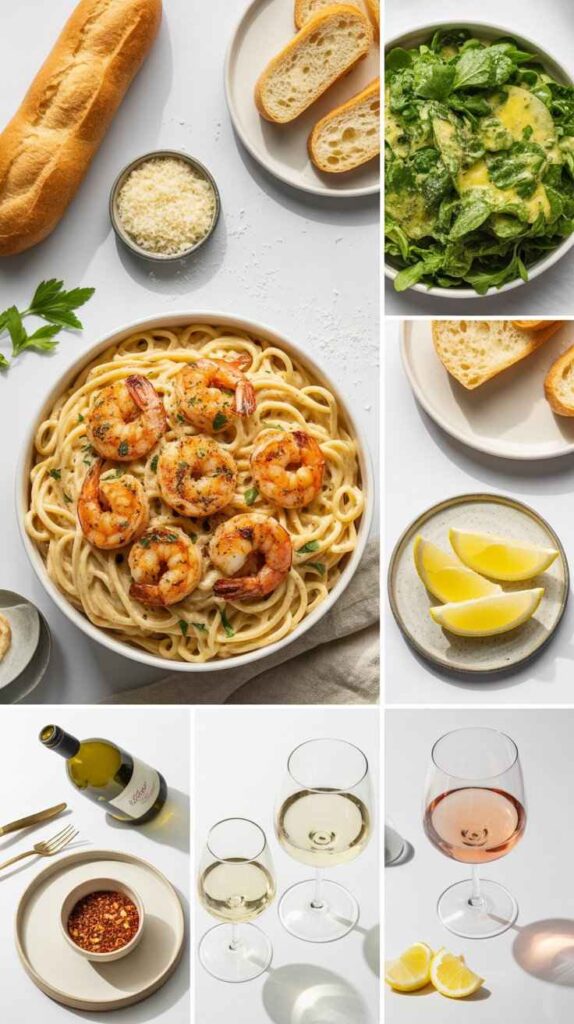 - Warm garlic bread or focaccia alongside for mopping up the extra sauce
