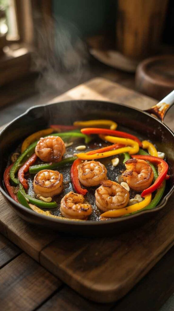 And the shrimp. Large shrimp cooked properly — just 1 to 2 minutes per side over high heat — stay juicy, tender, and slightly charred on the outside. Overcooked shrimp become rubbery and tough, so the fast, high-heat method used here is not just for speed. It is the technique that gives you the best possible result.