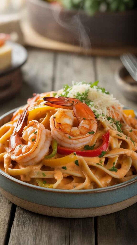 Creamy Cajun Shrimp Pasta is the weeknight dinner that punches so far above its weight that it barely seems fair. Twenty minutes from start to finish, one pan for the sauce, and a combination of bold Cajun seasoning, silky cream, sweet bell pepper, and perfectly seared shrimp that tastes genuinely extraordinary. It is fast enough for a Tuesday and impressive enough for a Saturday night when you want to cook for someone special without spending hours in the kitchen. Once this one is in your regular rotation, it will stay there permanently — because a dinner this good, this easy, and this satisfying is simply impossible to stop making.