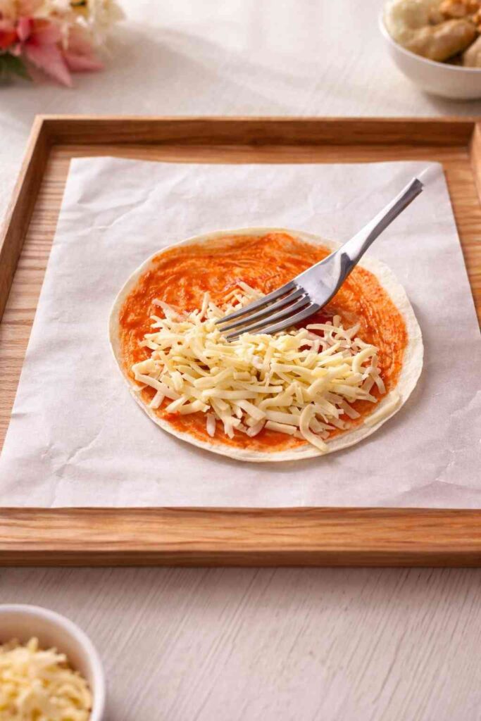 Placing cheese directly against the tortilla helps it act as a “glue.”