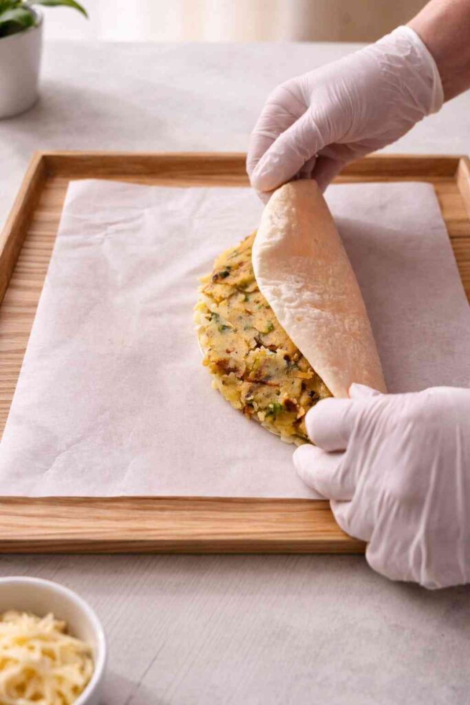 3. Assemble the Tacos: Lay a tortilla flat. Spread a thin layer of chili sauce on one half. Layer a generous pinch of cheese, followed by a thick scoop of the potato mixture. Fold the tortilla over to create a half-moon shape.