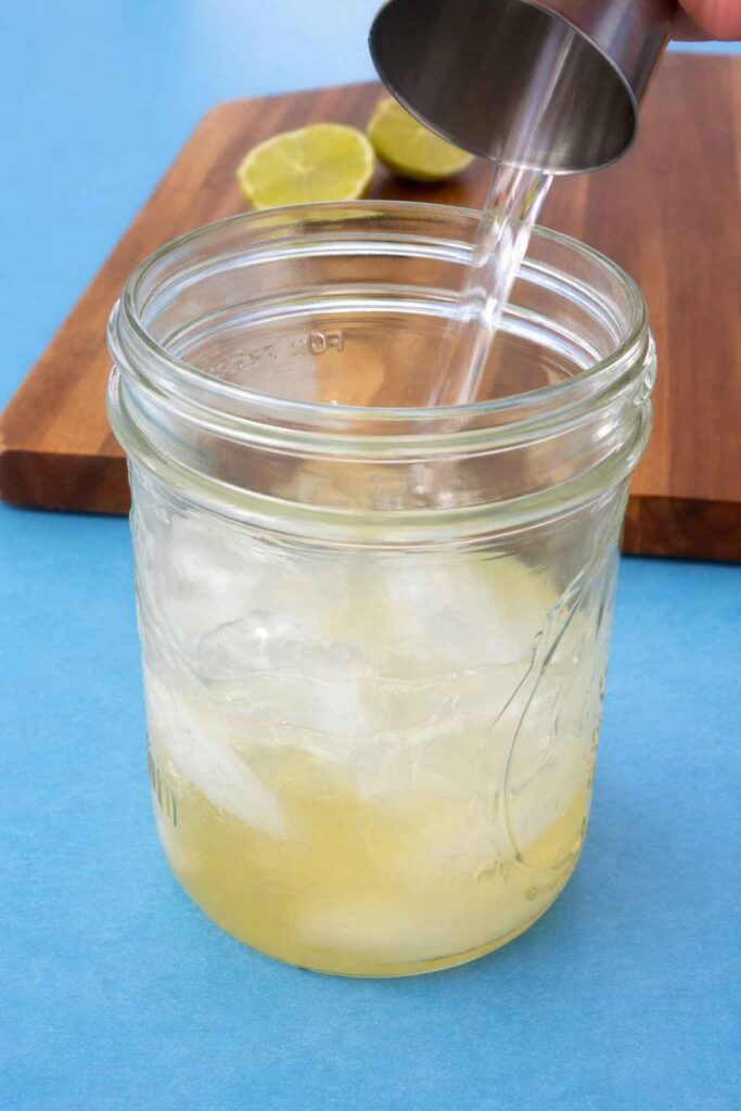 - Combine the ingredients: Fill a shaker or a mason container equipped with a shaker lid with ice. Add 4 ounces of margarita mix and 1½ ounces of tequila.