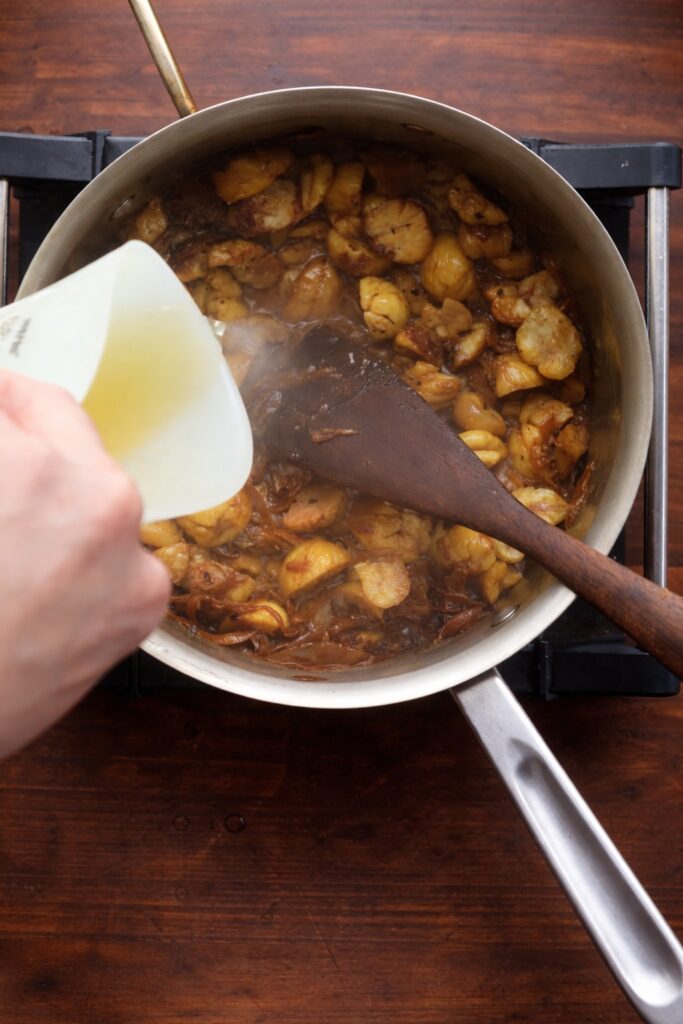 Step 5 — Simmer the Chestnuts with Stock and Herbs