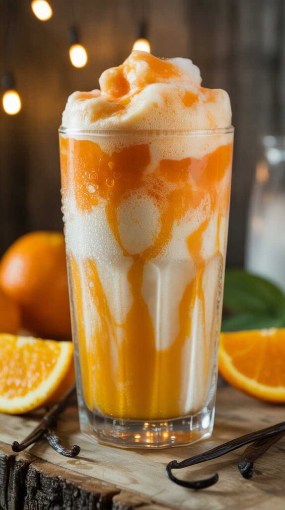 - Add the fizz last: Pour in the chilled orange soda. Pulse briefly 2–3 times to mix without killing the carbonation. Avoid over-blending.