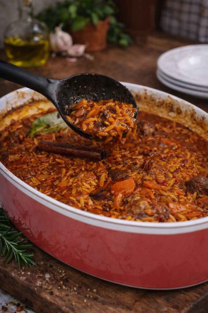 There are certain dishes in the world of Mediterranean cooking that go beyond mere recipes — they are experiences, traditions, and memories baked into a single pan. Greek Lamb with Orzo, known throughout Greece as Yiouvetsi (pronounced you-vet-see), is unquestionably one of those dishes. It is the kind of meal that makes your entire home smell extraordinary for hours before it ever reaches the table. Warm with cinnamon, deep with slow-roasted lamb, and rich with a fragrant tomato sauce that the orzo slowly drinks up during its time in the oven, Yiouvetsi is Mediterranean comfort food at its most magnificent and soul-satisfying.