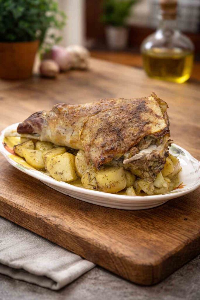 What makes this recipe so special is the harmony between its few, simple components. A bone-in leg of lamb, some chunky potato wedges, a generous pour of extra virgin Greek olive oil, and a vibrant marinade of lemon, honey, mustard, oregano, and garlic — that is truly all you need. The oven does the rest. Over the course of three and a half unhurried hours, the lamb slowly surrenders its juices into the pan, the potatoes absorb every last drop of that citrus-herb-infused fat, and the whole thing emerges as a unified, golden, meltingly tender masterpiece. Whether you are cooking for a crowd or celebrating a special occasion, this classic Greek roast lamb recipe is guaranteed to impress every single time. Let us walk you through everything you need to know.