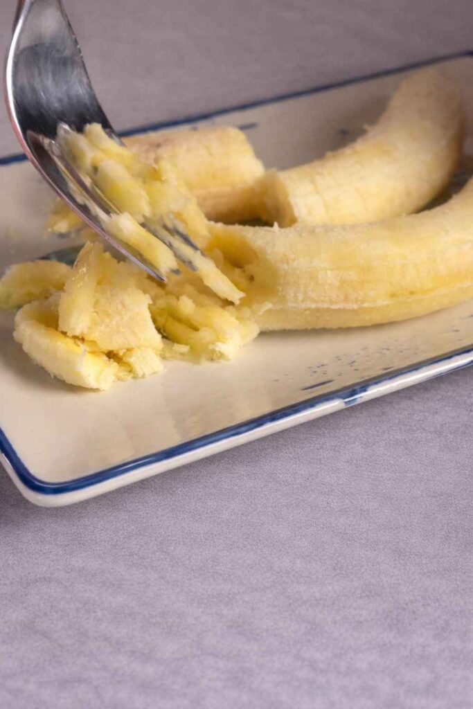 1. Prepare the Base: In a mixing bowl, peel the two ripe bananas and mash them thoroughly with a fork until they reach a smooth, liquid-like consistency.