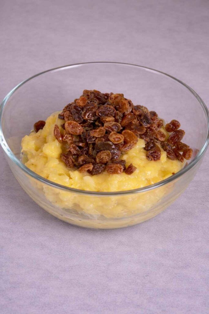 Fold in raisins and diced apple evenly.