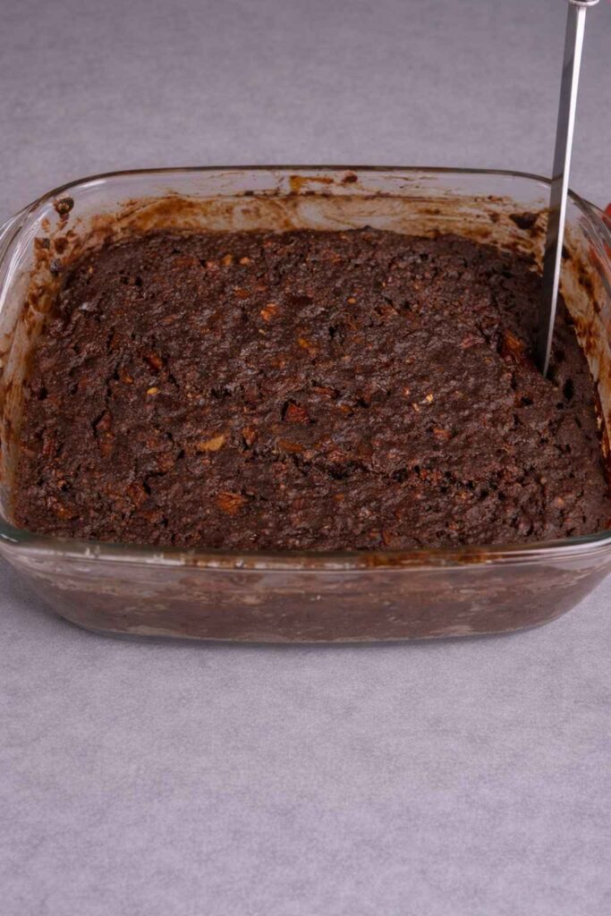 5. Prepare the Pan: Grease a baking dish with a small amount of olive oil to prevent sticking. Pour the cake batter into the dish and smooth out the top.
