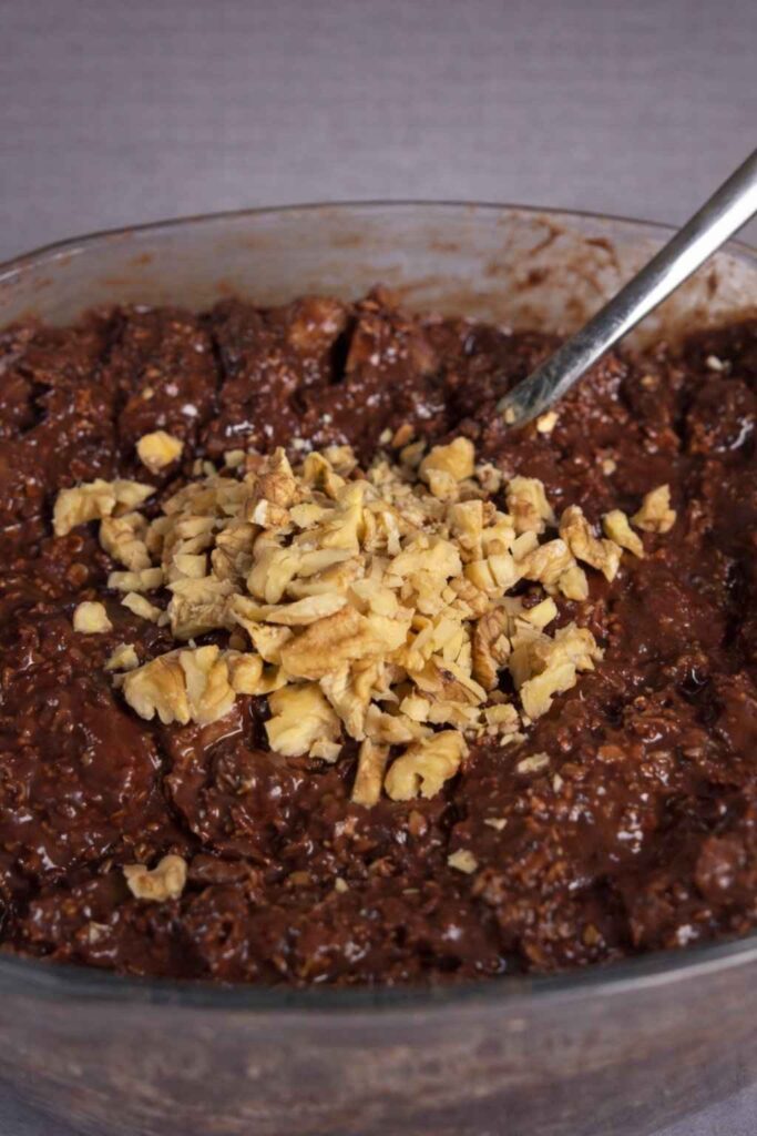 6. Garnish: Sprinkle the chopped walnuts evenly over the top of the batter for extra crunch.