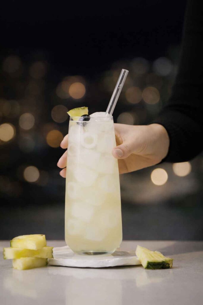 What makes the Honolulu Highball genuinely exceptional rather than merely pleasant is the thoughtfulness of its ingredient architecture. Each of the three juices, orange, lemon, and pineapple, plays a specific, irreplaceable role in the cocktail’s flavor balance. The orange brings sweetness and body. The lemon provides the essential tartness that keeps the drink refreshingly crisp rather than cloying. The pineapple delivers the defining tropical character that gives this cocktail its island soul. The fresh ginger slice shaken with the other ingredients adds a subtle background warmth and spice that bridges the gin’s botanical complexity with the tropical fruit sweetness in a way that makes every sip feel both unexpected and completely right.