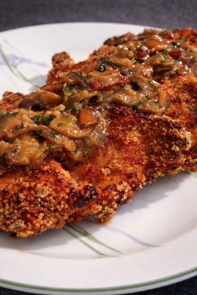 Store the schnitzel in an airtight container in the fridge for up to 3 days. To keep the coating crispy, reheat it in an air fryer or oven at 350 Degree F for about 5 minutes. Microwaving is not recommended as it will make the breading soggy.