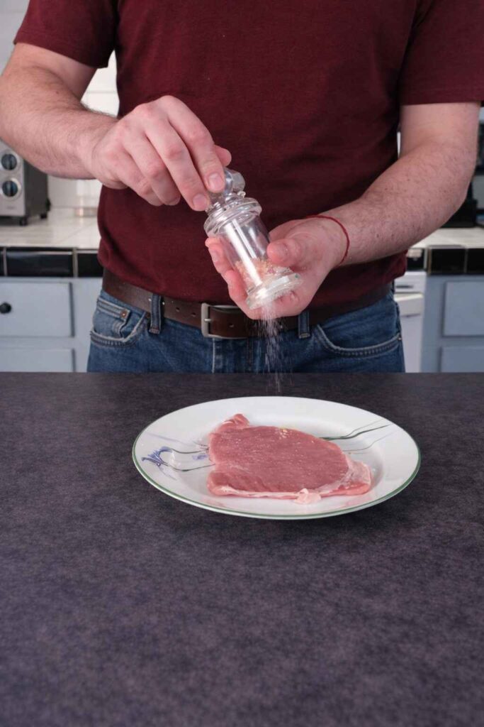 1. Pork Loin Preparation: Place each pork loin between two sheets of plastic wrap and pound it until it reaches a thickness of approximately ½ inch. This process ensures that the flesh is cooked evenly and that it is tender.