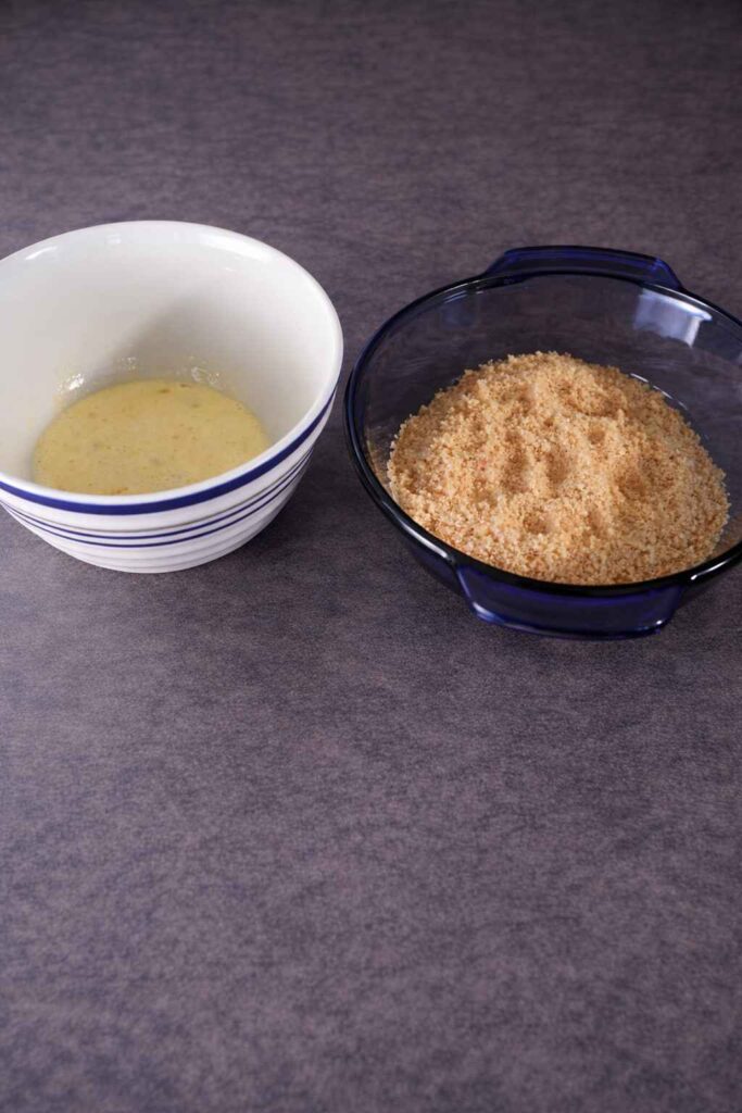 Whisk eggs and German mustard in a separate shallow dish until combined.