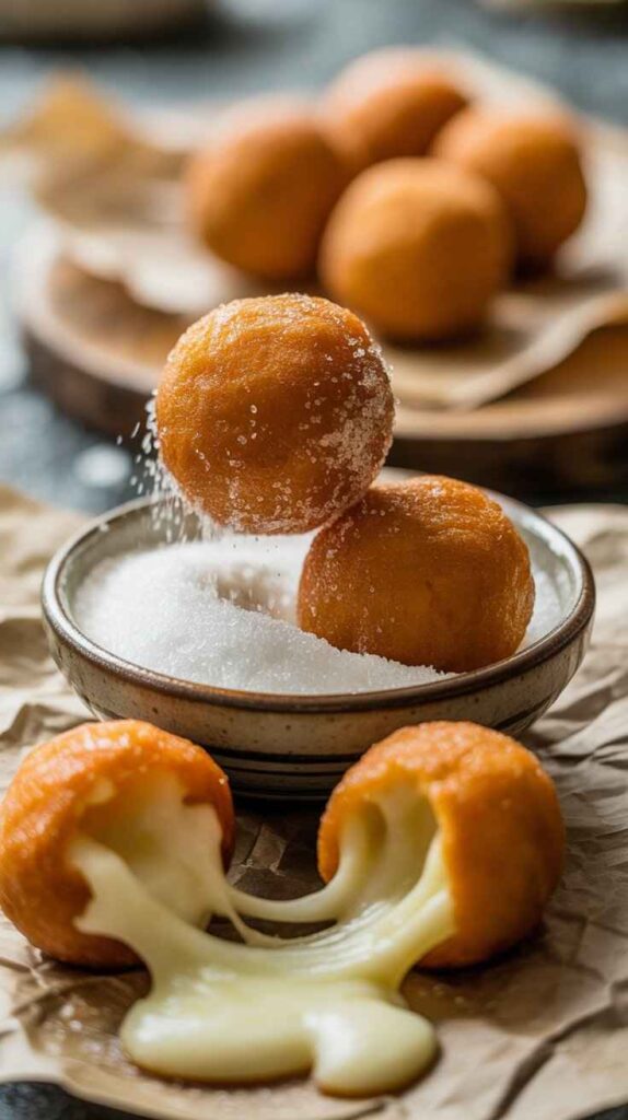 What makes this recipe particularly wonderful is how genuinely approachable it is. The dough comes together in minutes with a handful of ingredients. The shaping is straightforward once you get the feel of it. The frying requires attention but no specialized skill. And the payoff β those golden, sugar-dusted spheres with their molten mozzarella centers β is completely disproportionate to the effort involved. This is the kind of recipe that makes you look like you spent hours in the kitchen when the reality is that you had hot cheese balls on the table in under an hour from start to finish.