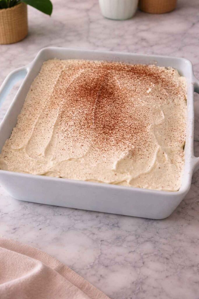 Make it ahead of time. This tiramisu tastes significantly better after an overnight rest in the refrigerator. The flavors deepen, the texture improves, and it becomes much easier to slice cleanly. It is the ideal make-ahead dessert for stress-free holiday entertaining.