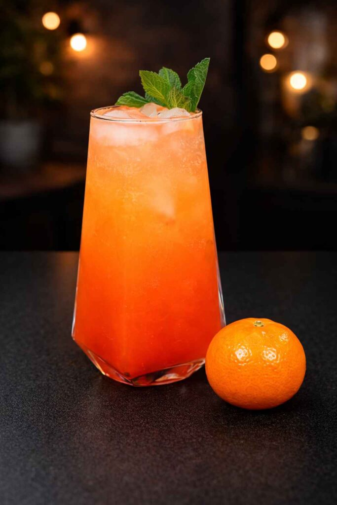 The Mandarin Sunrise is a celebration of seasonal fruits and vegetables, not simply how they look. Mandarins are popular because they smell like flowers and taste sweeter than orange juice. The juice stays bright citrusy when muddled fresh, which works well with the fizz of sparkling water. This drink is perfect for people who appreciate flavors that are “clean.” You let the mandarin’s natural sugars shine through by not using fake mixers and only utilizing real fruit.