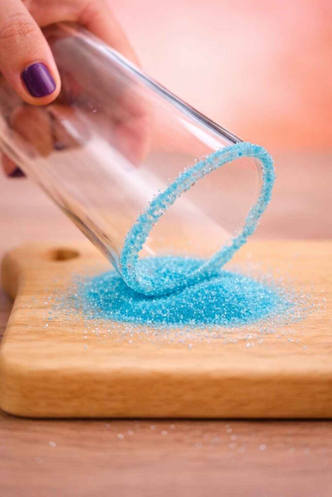 - Always use gel food coloring rather than liquid for the blue sugar rim. Gel produces a far more vibrant, saturated color and does not add excess moisture that destabilizes the sugar crystals.