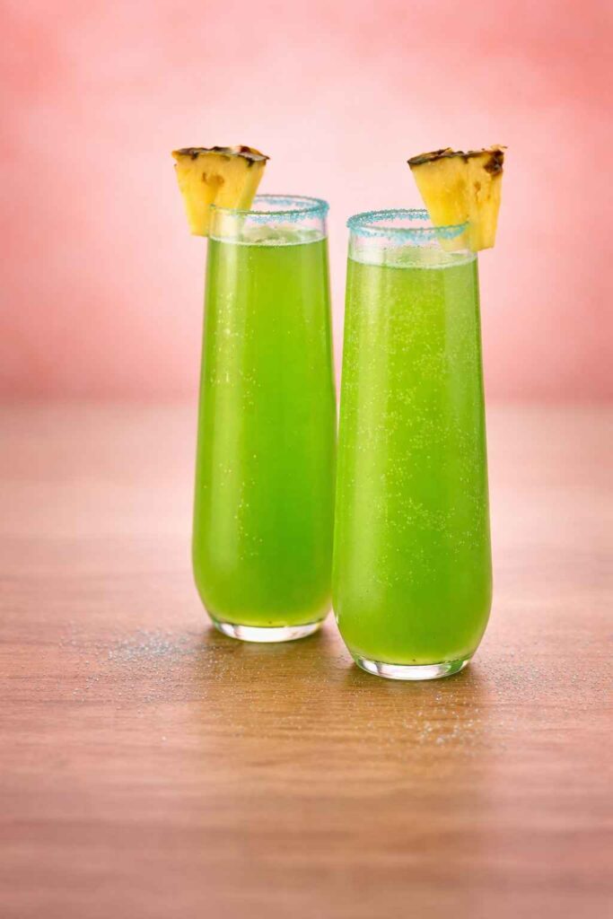 At its heart, the Mermaid Mimosa is a creative reinvention of the beloved classic mimosa, that timeless union of Champagne and citrus juice that has anchored brunch menus for nearly a century. But where the classic mimosa is golden and comfortably familiar, the Mermaid Mimosa is teal, tropical, and completely transportive. The substitution of fresh pineapple juice for standard orange juice shifts the flavor profile from familiar to exotic. The addition of melon liqueur introduces a lush, honeydew sweetness that deepens the drink’s tropical complexity. And the splash of blue curacao, that vivid, bitter-orange Caribbean liqueur, is the transformative ingredient that turns the cocktail’s color from amber to the breathtaking blue-green of a Caribbean lagoon at midday.