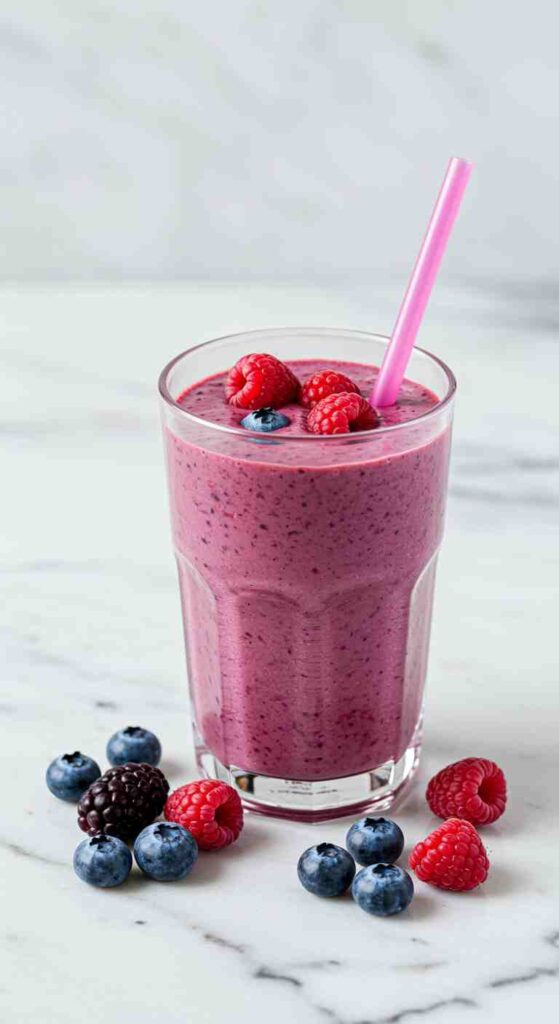 This smoothie nails that balance of creamy, bright, and not too sweet. Frozen mixed berries bring color and flavor without needing tons of added sugar.