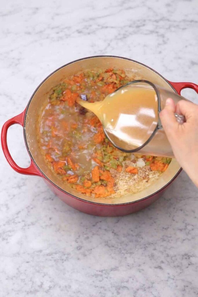 Whisk the BrothAdd broth slowly to keep the roux smooth and lump-free.