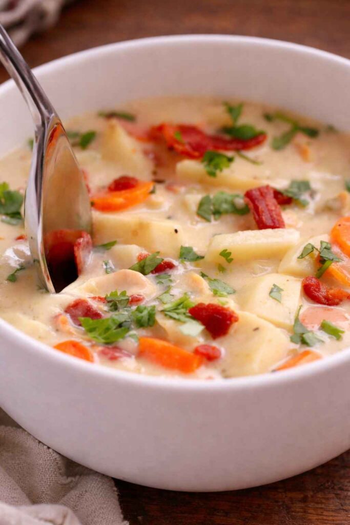 Creamy, smoky chowder with tender potatoes, clams, and a bacon-rich base