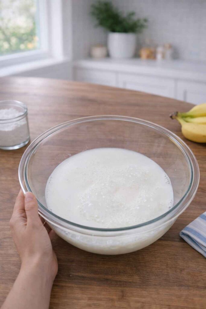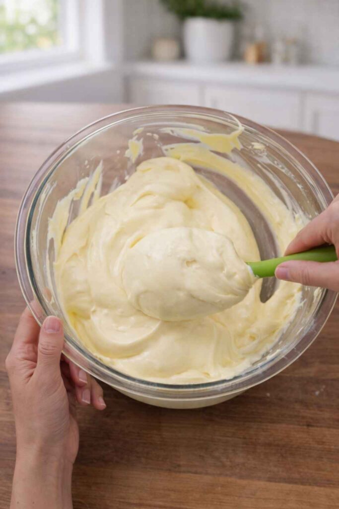 In a large mixing bowl, combine the cold milk, vanilla extract, and both packets of instant vanilla pudding mix. Beat with a hand mixer until the mixture begins to thicken. Once thickened, pour in the sweetened condensed milk — use the full can for a sweeter dessert or half a can for a lighter flavor. Beat again until everything is fully combined and smooth.