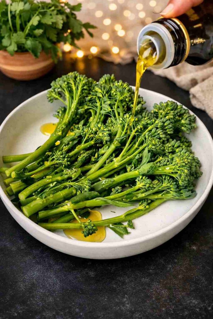 - 1 bunch broccolini or broccoli โ tossed with olive oil, sea salt, and black pepper, air fried at 400ยฐF for 8 minutes