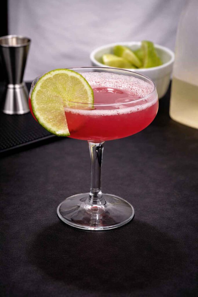 This drink is colorful and festive, with the sweetness of pomegranate, the sourness of lime, and the herbal properties of gin. People typically suggest it as a first gin drink.