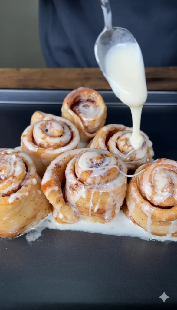Yes! These rolls are perfectly freezer-friendly. After baking and cooling completely, wrap each roll individually in plastic wrap, then place in a freezer-safe bag. They’ll keep for up to 3 months. Store the glaze separately in the refrigerator. To serve, thaw overnight in the fridge or microwave for 30-45 seconds from frozen, then add fresh glaze before eating.