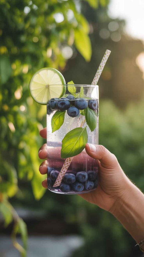 1. Make a quick blueberry-basil mash. In a bowl or pitcher, lightly muddle 1 cup of blueberries with 6–8 fresh basil leaves and 2 tablespoons of sugar. You want to crush the berries just enough to release their juices while bruising the basil to release aroma. Don’t pulverize it into a paste.