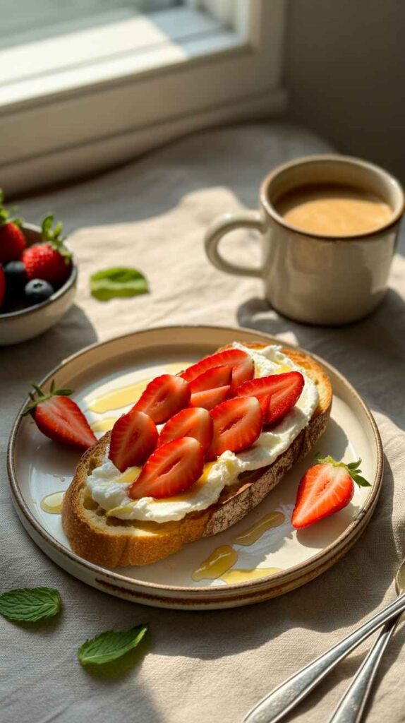 This toast is all about contrast. The creamy ricotta gives you a rich, mellow base, while the strawberries add juicy sweetness and a little tartness. A touch of honey ties everything together, and the mint brings a cool, fragrant lift that keeps each bite tasting fresh.