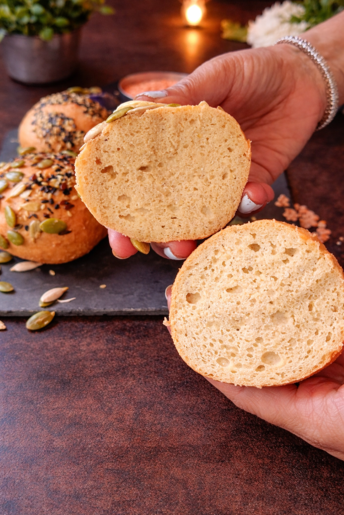 These buns are incredibly versatile across meals and dietary preferences. Use them as burger buns filled with a chickpea patty, grilled vegetables, and tahini sauce for a plant-based lunch that genuinely satisfies. Slice them thin, toast until crispy, and top with smashed avocado and a sprinkle of chili flakes for an elevated breakfast. Brush with garlic butter and broil briefly for a wholesome, gluten-free garlic bread that pairs beautifully with soups and stews.