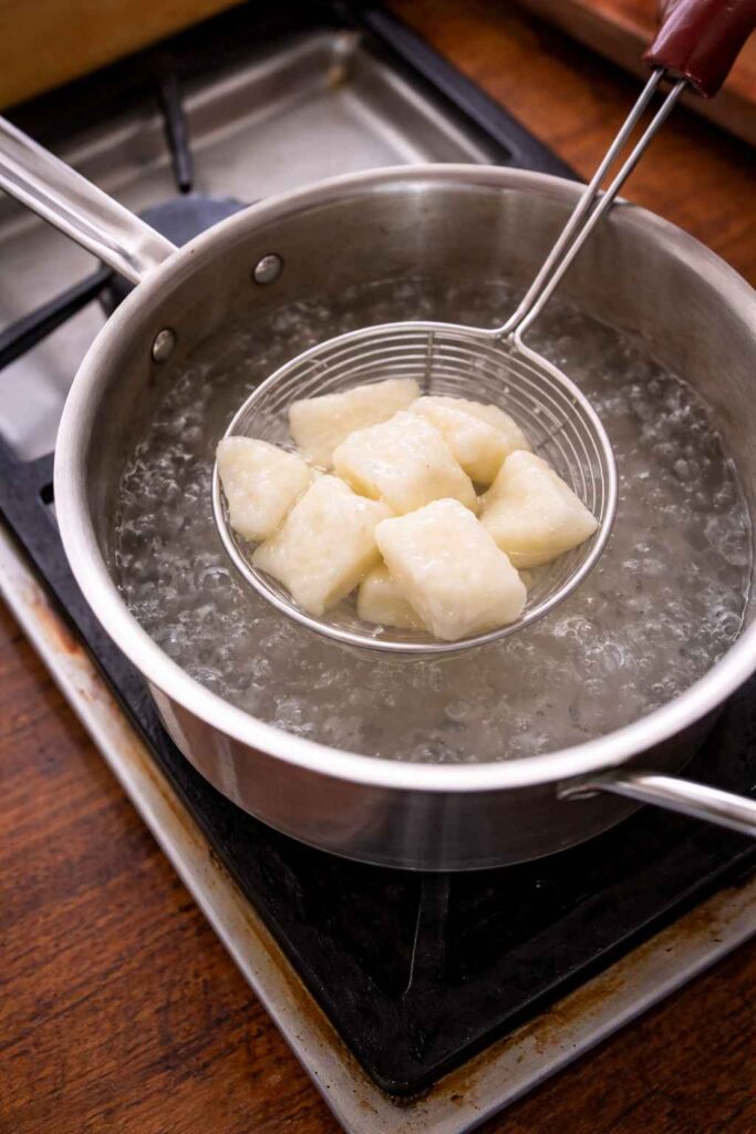 - Cook the Gnocchi: Drop the gnocchi into boiling salted water. They are ready when they float to the surface (about 2-3 minutes).