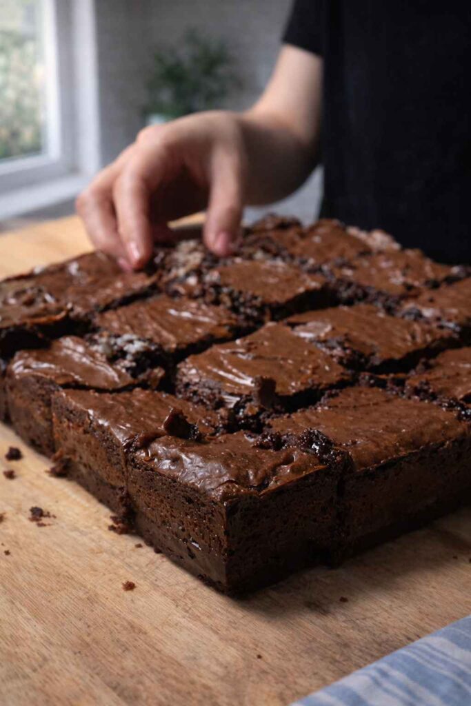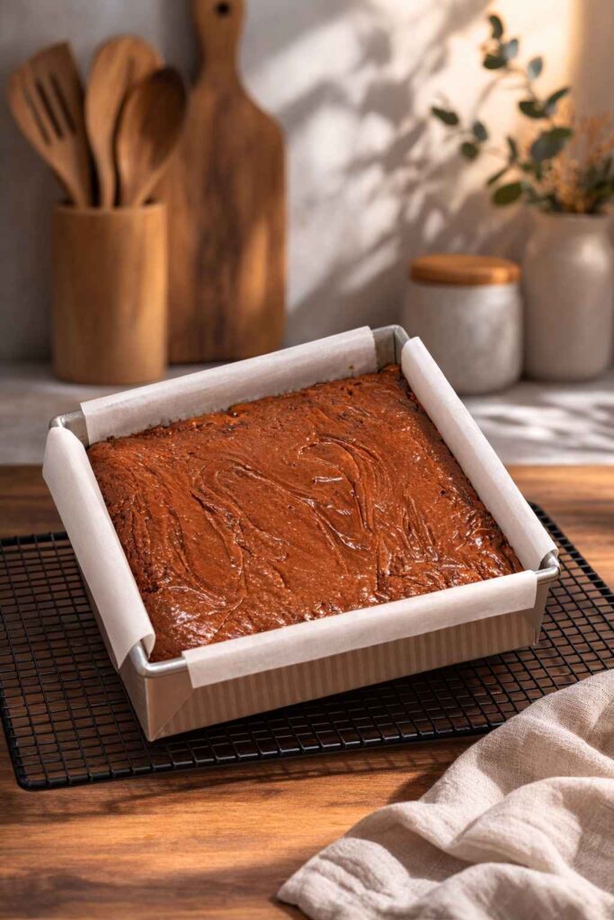 Bake according to your brownie mix instructions, typically 30–35 minutes, until a toothpick inserted into the center comes out with moist crumbs (not wet batter). Let the brownies cool completely in the pan before slicing — this is non-negotiable for clean cuts and a set texture.