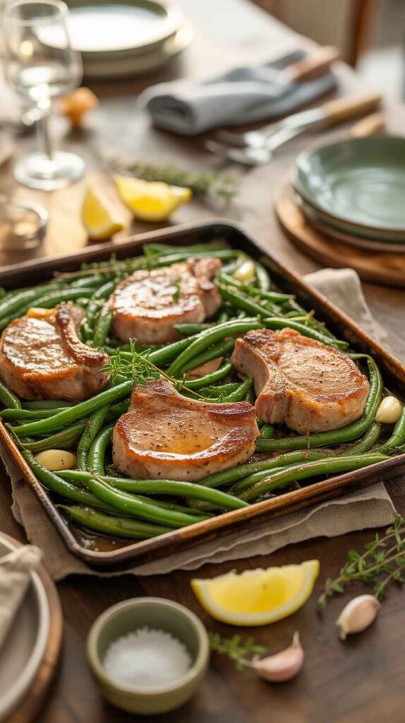 Sheet Pan Ranch Pork Chops with Green Beans